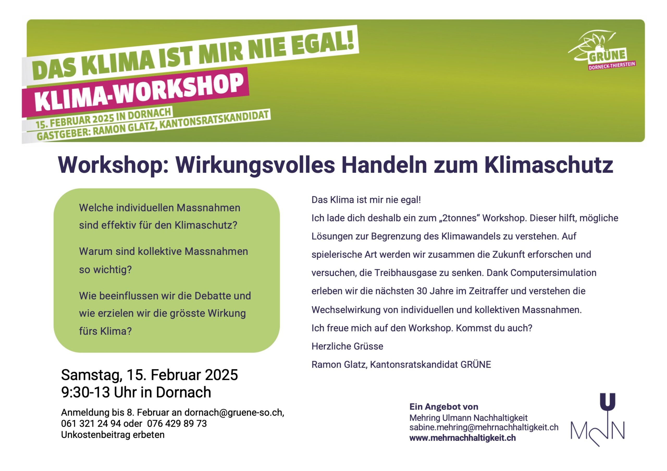 Anmeldung: bis 8. Februar an dornach@gruene-so.ch, 061 321 24 94 oder 076 429 89 73